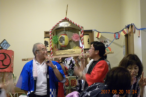 屋内にて、盆踊りや和太鼓、ゲーム、そして綿菓子やかき氷などを楽しんでいただき、ご家族様やお孫さんとご一緒に、夏祭りを味わっていただけます。