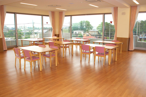 天井が高く、窓が広く、陽の光がたくさん入るデイルーム